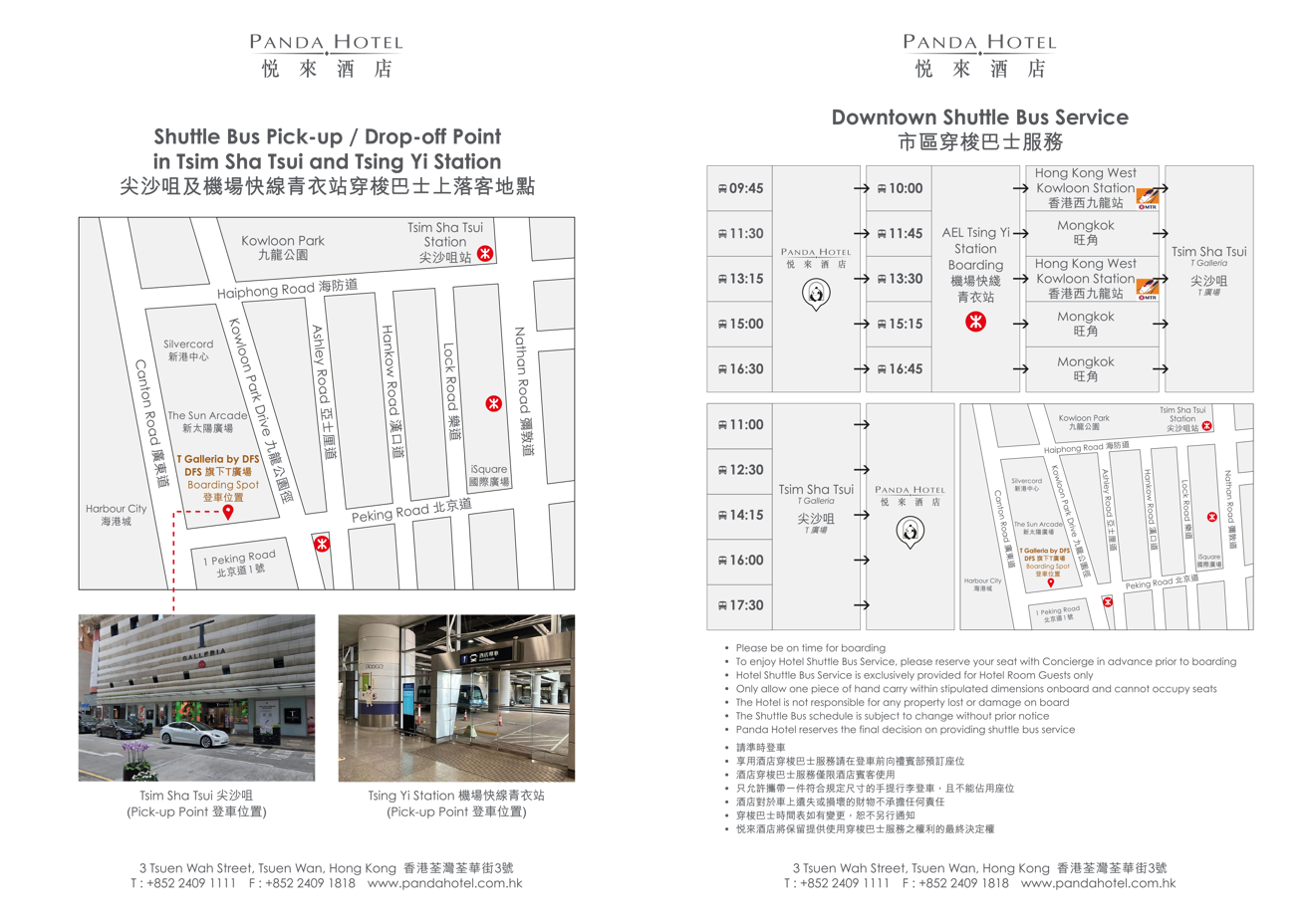 定时巴士服务往返市区,请与 3 楼礼宾部预留座位。